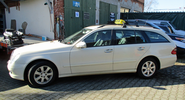 Mercedes-Taxi-W211 - Filmfahrzeugvermietung mit Service und extra Requisiten