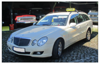 Mercedes-Taxi-W211 - Filmfahrzeugvermietung mit Service und extra Requisiten
